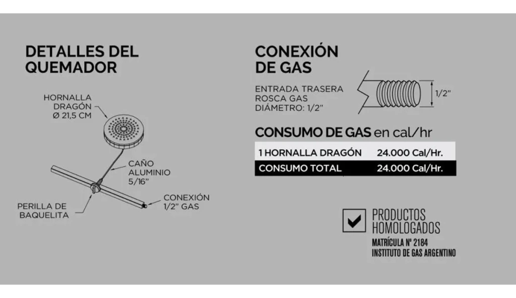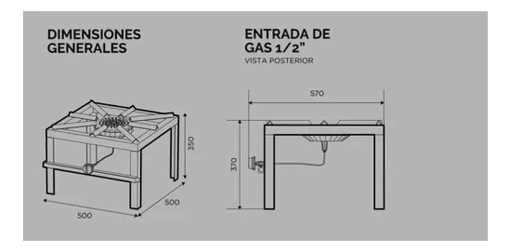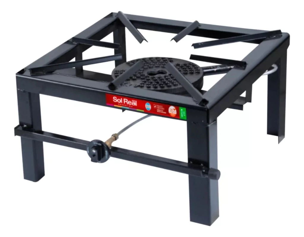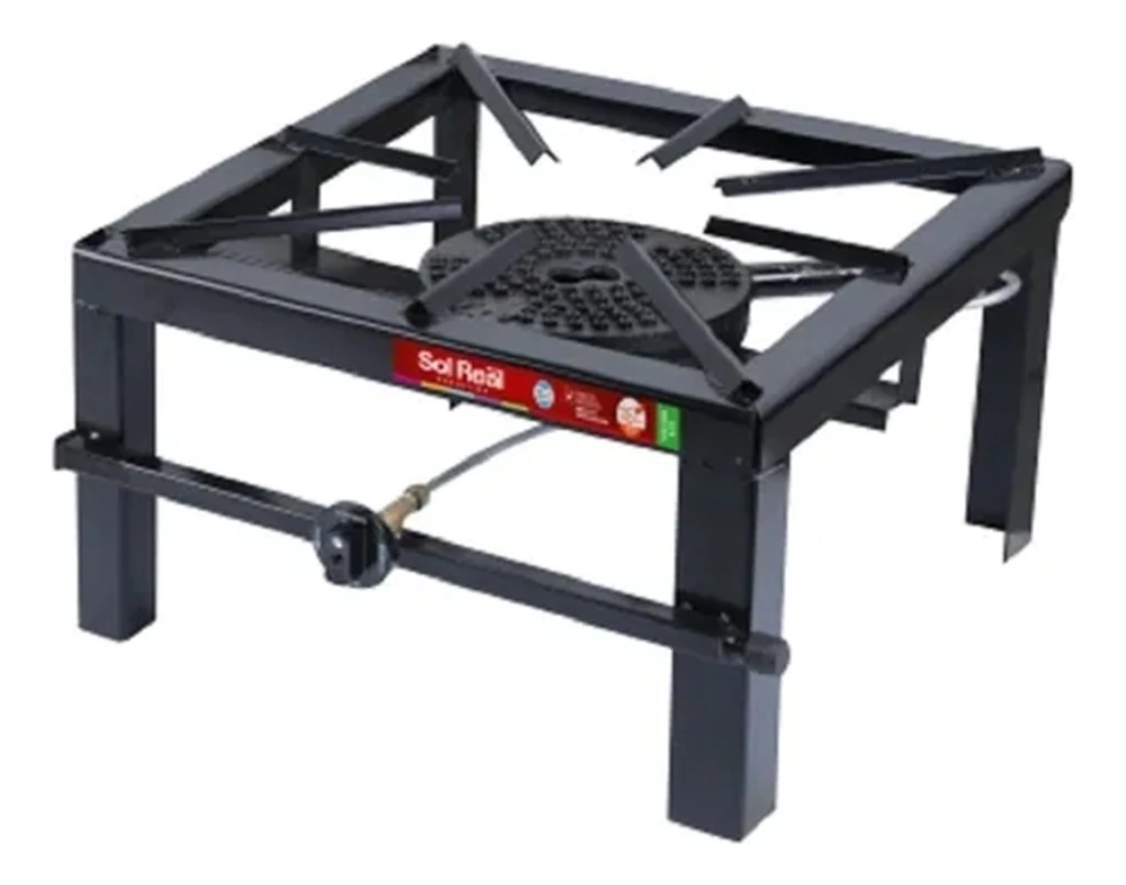 ANAFE DRAGON 1 HORNALLA SOL REAL GAS ENVASADO - CARACTERÍSTICAS GENERALES: Gas envasado 1 Hornalla Estructura reforzada. Soporta gran peso. Medidas: 50cm Ancho X 50cm Profundidad X 35cm Alto 24.000 Kilocalorías/h. - CARACTERÍSTICAS TÉCNICAS: Marca: Sol Real Línea: Estructurales Modelo: 091-GE Color: Negro Materiales de la superficie: Estructura reforzada Con plancha: No Con función de calentamiento rápido: No Tipo de montaje: De pie Consumo: 24.000 kcal/h - Dimensiones Ancho x Profundidad x Altura 50 cm x 50 cm x 35 cm - Especificaciones Tipos de alimentación Gas Tipo de gas: Envasado Tipo de encendido: Manual Tipo de control: Perillas Cantidad de hornallas: 1 Es industrial: Sí Con traba de seguridad: No Con indicador de calor residual: No