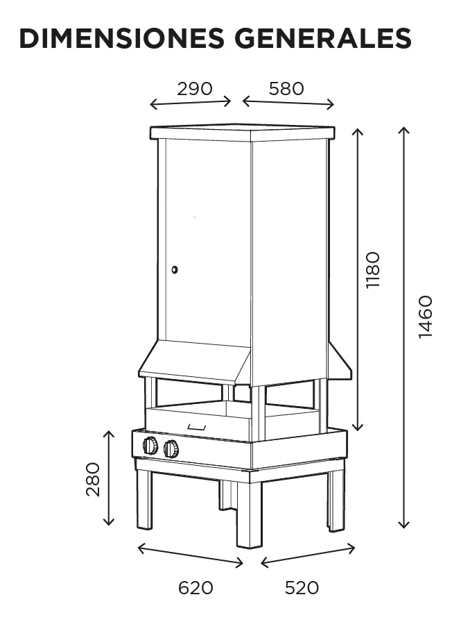 SUPER ASADOR 6 POLLOS SOL REAL SIN HUMO CARACTERÍSTICAS: - Asador estilo criollo (no usa espadas). - Gabinete de acero inoxidable esmerilado. - Techo desmontable. - Puerta simple de vidrio templado. - Cocción sin humo, ideal interiores. - Incluye sistema de rejas porta pollos y mango sujetador. - Doble mechero lateral con comandos independientes de regulación de temperatura. - Bandeja inferior recolectora de grasa. - Válvula de seguridad. - Alimentacion: Gas natural - Capacidad: 6 Pollos - Kilocalorías/h: 2.200