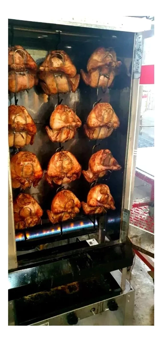 Asador Criollo Mediano 12 Pollos Sol Real Gas Envasado - Características Generales: Gabinete de acero inoxidable esmerilado. Techo desmontable. Puerta simple de vidrio templado. Cocción sin humo, ideal interiores. Tipo de Gas, Gas Envasado Incluye sistema de rejas porta pollos y mango sujetador. Doble mechero lateral con comandos independientes de regulación de temperatura. Bandeja inferior recolectora de grasa. Válvula de seguridad. Capacidad: 12 Pollos Kilocalorías/h: 2.200 - Características Técnicas: Marca Sol Real Línea Industrial Modelo AC12 Color Plateado Tipo de Gas, Envasado Material Acero inoxidable/Vidrio Templado Tipo de gas Natural Es inflamable No Con control de temperatura Sí Con medidor de temperatura No Con depósito para grasa Sí - Dimensiones: 62 cm Profundidad 80 cm Ancho 146 cm Altura