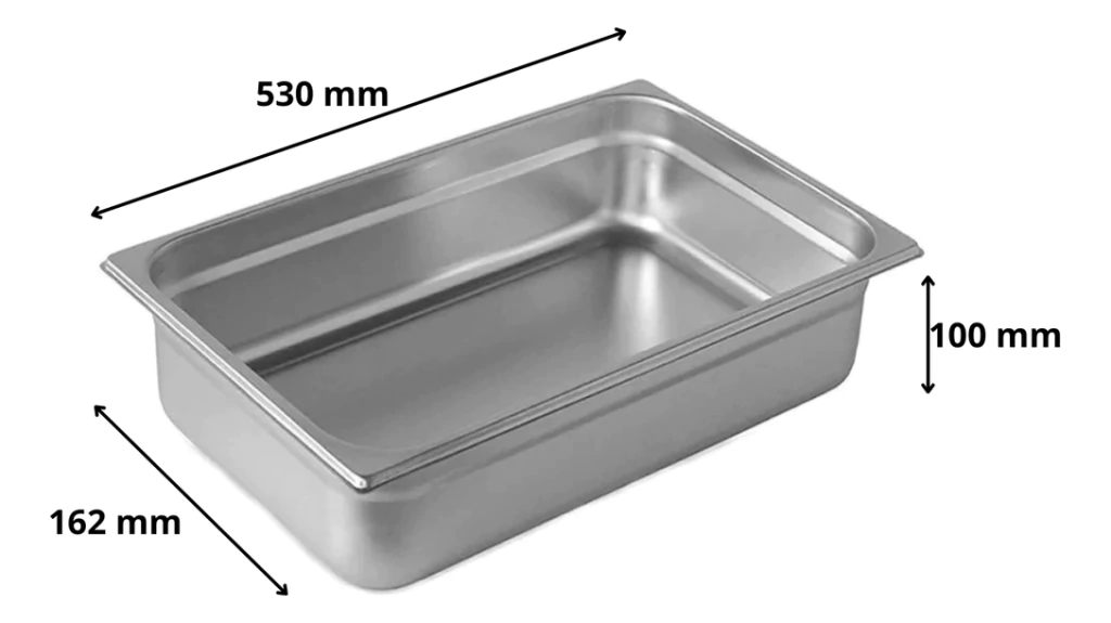 Fuente profunda GN 1/2 Largo 530x162x100mm Los GN Acero o Gastronorm son productos que no pueden faltar en su negocio, desarrollados especialmente para el almacenamiento de productos fríos y calientes, frutas, verduras, carnes, pescados o cualquier tipo de alimentos. Presentes en hotelería, catering y todo tipo de restaurantes. Con uso versátil en hornos convectores, convencionales y en general cualquier tipo de cocción. Características Principales: Color: Acero Inoxidable Alto: 100 mm Ancho: 162 mm Largo: 530 mm Espesor: 0,6 mm Marca: MASTER Materialidad: Acero Inoxidable 304 El acero inoxidable es unos de los materiales más higiénicos que existen. Su composición permite que la suciedad y agentes externos como el polvo y las bacterias no queden adheridos a la superficie. Es por ello que también es el material más utilizado en quirófanos y cocinas industriales. Sus mayores ventajas: - Máxima higiene y menor adherencia de la suciedad y agentes externos. - Fácil limpieza y gran durabilidad. - Resistente al calor y excelente conductor del mismo. - Material reciclable.