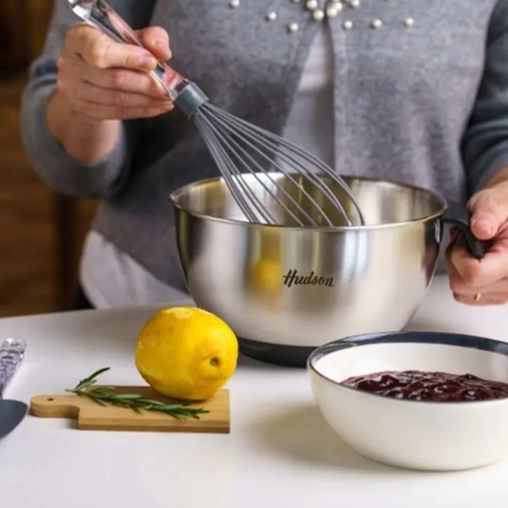 Batidor Pera Silicona Reposteria Hudson 31cm Color Plateado Con un largo total de 31 cm y un diámetro de batidor de 8 cm, este utensilio es perfecto para alcanzar cada rincón de sus recipientes, asegurando una mezcla homogénea de sus preparaciones. La flexibilidad de la silicona facilita el trabajo con masas y salsas de distintas consistencias, desde ligeras hasta más espesas. Además, su diseño elegante y moderno añade un toque de estilo a su colección de utensilios de cocina. - La limpieza es sencilla, ya que el Batidor Pera Silicona Repostería Hudson es fácil de lavar y apto para el lavavajillas, lo que le permite dedicar más tiempo a disfrutar de sus creaciones culinarias y menos a la limpieza. Sea cual sea su receta, desde aireados merengues hasta cremosas salsas, este batidor es la herramienta que le ayudará a lograr resultados perfectos. Características principales Marca Hudson Modelo UTS112G Color Plateado Formato de venta Unidad Otras características Material del batidor: Silicona Material del mango: Acrílico Largo total: 31 cm Diámetro del batidor: 8 cm
