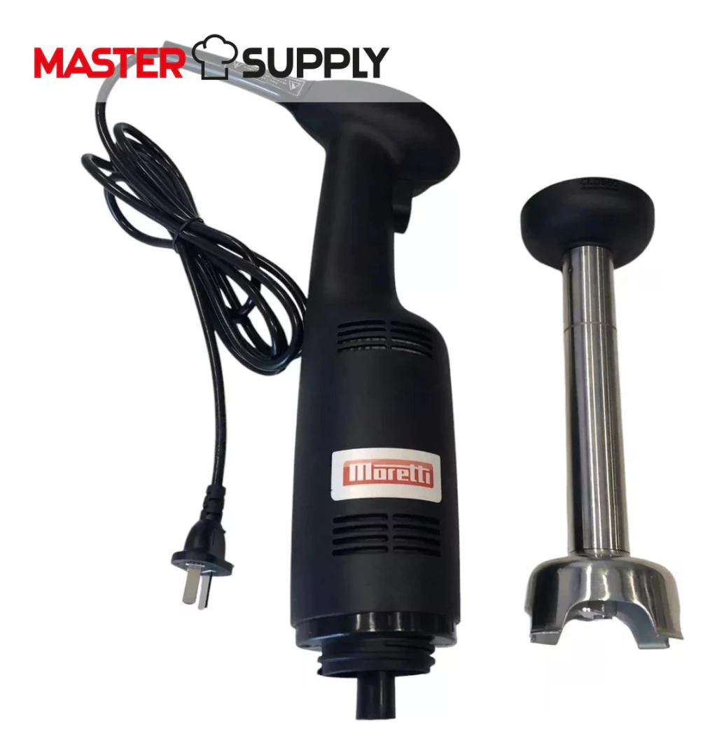 BATIDORA DE MANO MORETTI SPINNER-270 La Licuadora de Mano Industrial Moretti Spinner 270w en color negro es la herramienta ideal para chefs y amantes de la gastronomía que buscan eficiencia y calidad en sus preparaciones. Con una potencia de 270 W, este modelo está diseñado para licuar y picar con facilidad, permitiendo obtener resultados profesionales en la cocina. Su varilla y hoja de acero inoxidable garantizan durabilidad y resistencia, facilitando la limpieza y el mantenimiento. La varilla removible permite un uso versátil, adaptándose a diferentes tipos de recetas y necesidades culinarias. Con una única velocidad, esta licuadora se enfoca en ofrecer un rendimiento constante y efectivo. La Moretti Spinner 270 es perfecta para entornos industriales, donde la rapidez y la eficacia son esenciales. Su diseño ergonómico y funcionalidad simplificada hacen que sea fácil de manejar, incluso en las tareas más exigentes. Ideal para preparar salsas, cremas y purés, esta licuadora se convertirá en un aliado indispensable en su cocina. Beneficios: ¡Comodidad y rapidez en cada mezcla con esta batidora de mano compacta y potente! - Procesadora automática con alta velocidad de operación para resultados rápidos y eficientes. - Bajo nivel de ruido, ideal para entornos de trabajo donde el silencio es importante. - Diseño fácil de limpiar y mantener, perfecto para uso doméstico o profesional. ESPECIFICACIONES TÉCNICAS: - Voltaje: 220 V. - Potencia: 270 W. - Frecuencia: 50 - 60 Hz. - Nivel de ruido: 80 - 85 dB. - Peso: 1.4 kg.