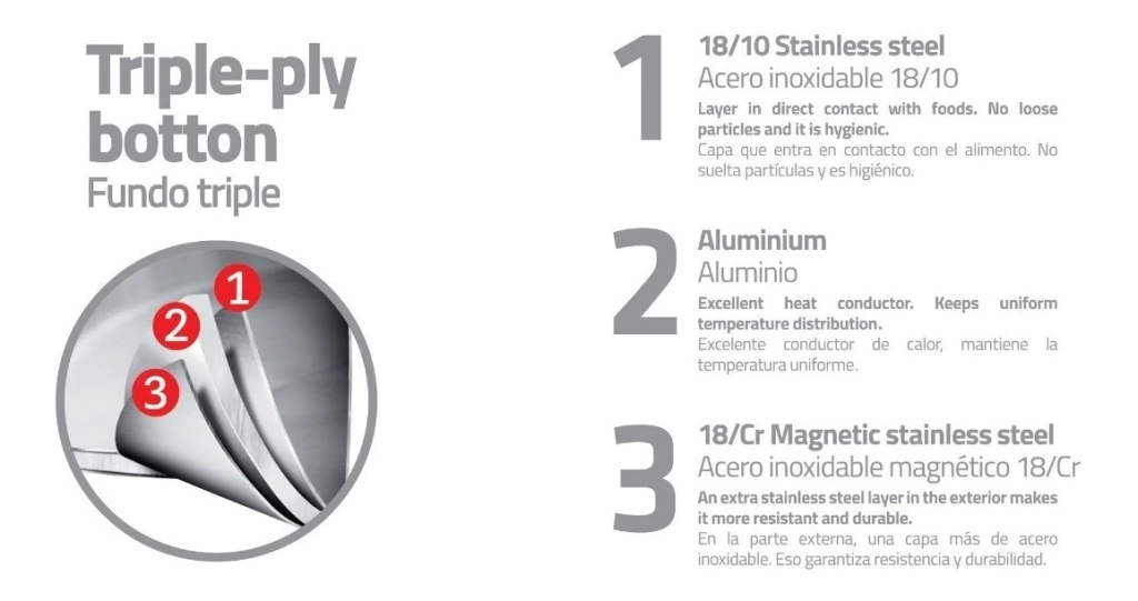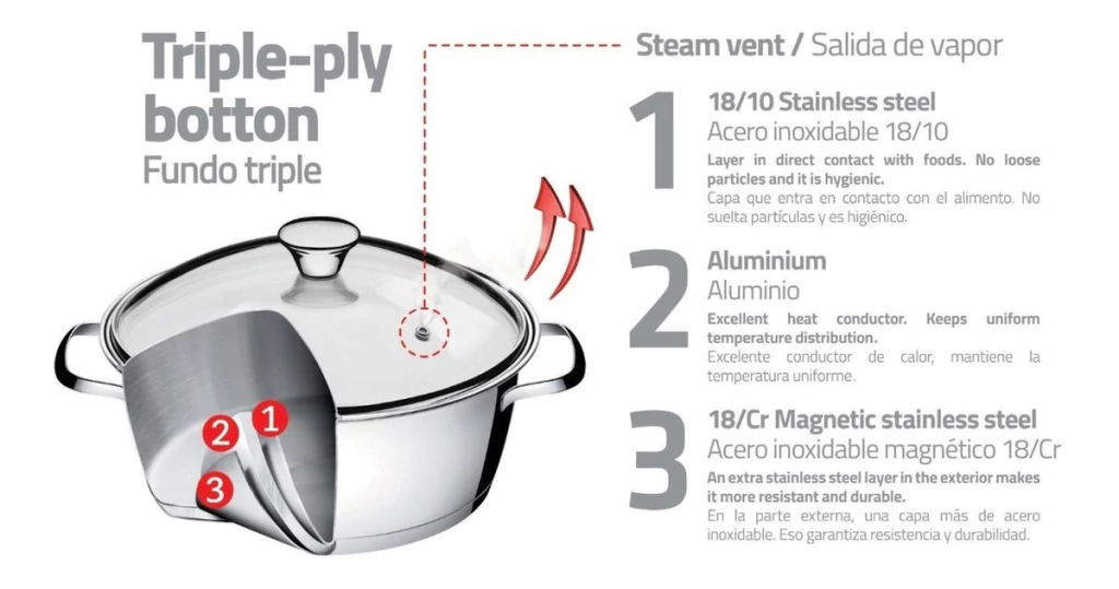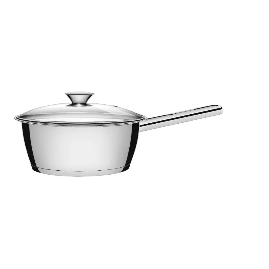 Cacerola Tramontina Allegra 16 cm Tapa de Vidrio Hecha totalmente de acero inoxidable 18/10, no suelta ningún residuo en los alimentos, manteniéndolos sanos. El fondo triple (acero inoxidable + aluminio + acero inoxidable) distribuye el calor uniformemente, proporcionando una cocción más rápida y uniforme, ahorrando energía y manteniendo los alimentos calientes durante un tiempo mayor. Se puede llevar al horno para gratinar o finalizar platos, a una temperatura máxima de 260°C. Su diseño limpio y sin ángulos facilita la limpieza. Tapa con salida de vapor y encaje perfecto. Se puede lavar diariamente en lavavajillas. Se puede utilizar en cocinas: a gas, eléctricas, sobre vidriado cerámico y de inducción. Medidas: Diámetro: 16 cm Capacidad: 1,5 litros Altura: 9 cm
