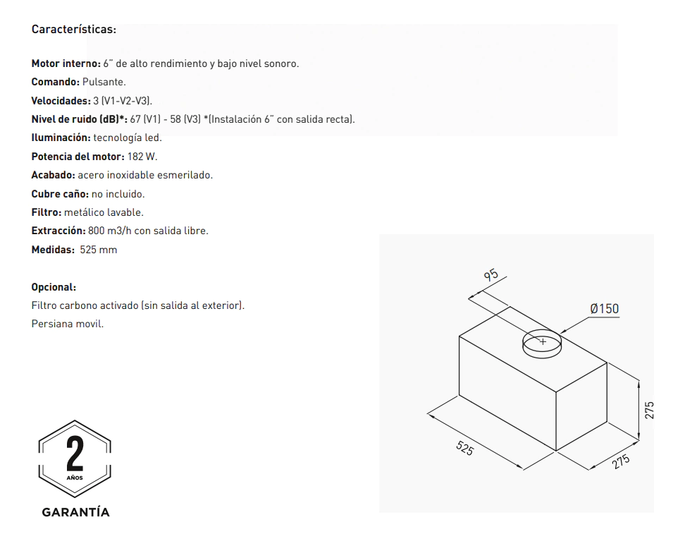 - MOTOR: Interno 6' de bajo nivel sonoro.