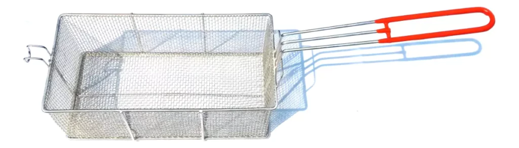 Canasto Freidor Rectangular Estañado Mango Goma 32x16cm Medidas: - Largo: 32 centímetros. - Ancho: 16 centímetros. - Altura: 14 centímetros. - Color Mango Engomado: Rojo/Naranjado Usos: -Usos Gastronómicos Profesionales, Intensivos u Hogareños. -Estructuras Reforzadas y de muy buena calidad. -Mango Siliconado para evitar Quemaduras y tener un mejor agarre. -Aptos para todo Tipo de Freidora/CucciPastas.