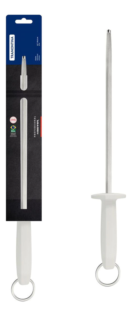 Chaira Afilador Rayada Imantada Tramontina Profissional 30cm CARACTERÍSTICAS; Calidad y durabilidad para profesionales que trabajan mucho. Con tecnología de punta, los cuchillos profesionales de Tramontina están siempre preparados para entrar en acción y lucirse con cualquier ingrediente, corte o receta. Eficiencia es lo que no falta. La altísima calidad de las láminas, resultado del tratamiento térmico compuesto por templado (calentamiento de la lámina), subcero (enfriamiento de 50 a 196 grados negativos) y revenido (aumento de la elasticidad del acero) les da vida larga y eficiente. La anatomía y ergonomía del mango de polipropileno con textura, inyectado directamente sobre el alma de acero, ofrecen seguridad y comodidad durante el manejo. La protección antimicrobiana inhibe y reduce el crecimiento de bacterias y hongos. Esta tecnología se incorpora durante el proceso de fabricación del mango y dura toda la vida útil del producto, pero no elimina la necesidad de lavarlo. o Material: Acero al carbono y mango de Polipropileno o Modelo: 24642/182 o Aro de acero inoxidable o Medidas del afilador: 46,6 cm largo total