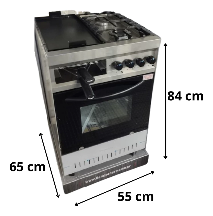 Cocina 2 Hornallas Y Plancha Delizia Visor Tostador Acero Caracteristicas: Mesadas en acero inoxidable AISI 304 con bandejas Antiderrame desmontables. Exterior en acero inoxidable esmerilado AISI 430. Válvula de seguridad en horno. Puerta de acero esmerilado o vidrio doble templado. Interior de horno completamente enlozado para una mejor y fácil limpieza. 3 estantes y 2 rejillas removibles. Aislante térmico de lana mineral en las recamaras. Perillas de Nylon. Respaldo de vidrio. Detalles en serigrafía. Piso de tejuelas refractarias. Plancha bifera Pinza tostador Dimensiones: Alto 84 cm Ancho 55 cm Profundidad 65 cm Peso 40 kg