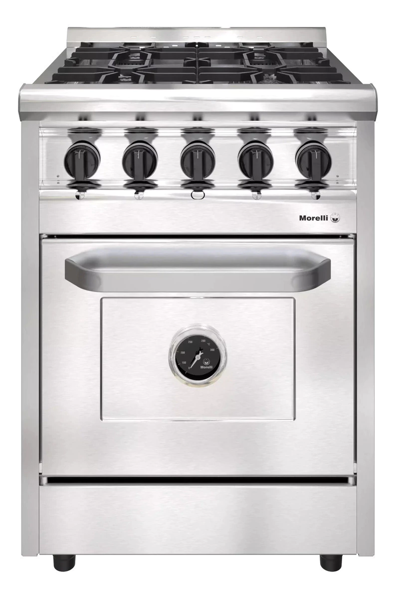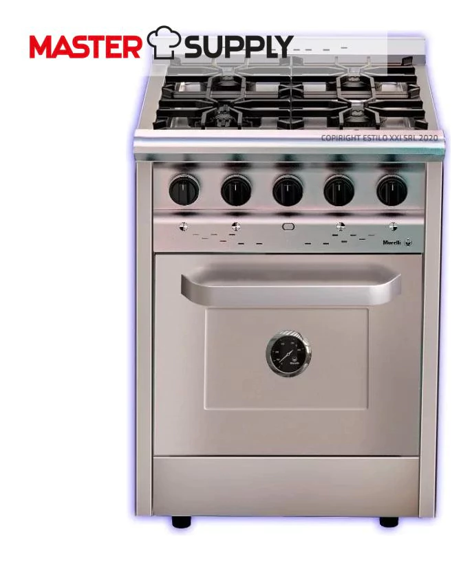 Cocina Industrial Morelli Country Puerta Ciega 60cm CARACTERÍSTICAS: - MODELO: MORELLI COUNTRY 600 CIEGA. - MEDIDAS: Ancho: 60cm Profundidad: 62cm Altura: 85cm OTRAS CARACTERÍSTICAS: - Frente, puerta de horno, mesada y laterales en Acero Inoxidable. - Con rejillas de fundición de hierro y bandejas anti derrame de acero inoxidable. - Horno de gran capacidad, con piso de tejuelas refractarias, puerta de acero inoxidable con pirómetro orientador de temperatura (máximo-medio y mínimo). - 4 Hornallas, quemadores redondos de fundición. 1 QUEMADOR ESTRELLA y 3 redondos.