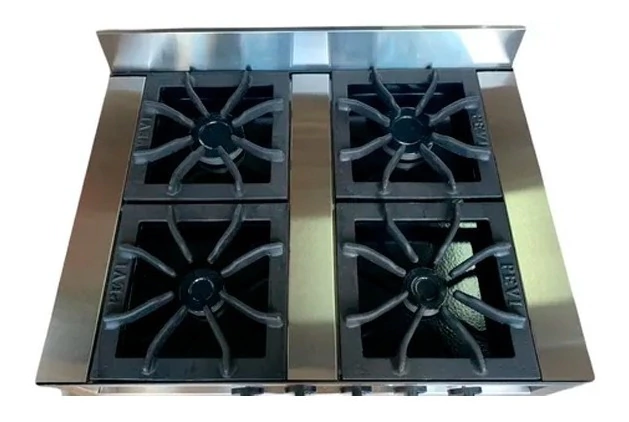 COCINA INDUSTRIAL PEVI 4 HORNALLAS 85CM GAS Modelo: C4GEF Detalles: - Exterior de acero inoxidable esmerilado - Interior en chapa enlozada - Bandejas antiderrame enlozada - Rejillas de fundición de hierro - Quemadores de fundición de aluminio con tapa enlozada - Aislado con lana de vidrio - Estructura en hierro ángulo en piso, puerta y marco - Piso de ladrillos refractarios - Pirómetro altamente sensible montado sobre puerta y conectado con el sector interno de la cámara de cocción - Perillas de baquelita térmica - Puerta con mango de madera montado sobre soportes de aluminio - Bisagras de puerta reforzadas - Quemadores del horno de caño redondo 7/8x 1,2mm. de espesor - Apto para gas natural o envasado - Incluye dos parrillas - Incluye válvula de seguridad en horno - Entrada de gas convencional de 1/2 pulgada - Potencia calorías/hora: 28000 -Medida Exterior: Ancho: 84,5cm Alto: 89,5cm Profundo: 63,5cm -Medida Interior: Ancho: 71cm Alto: 34cm Profundo: 59cm