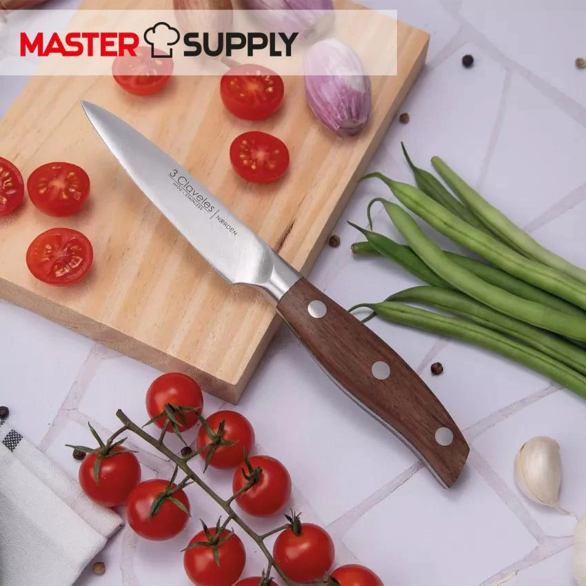 El cuchillo de verduras Nørden, limpia, pela y corta pequeñas frutas y verduras. caracteristicas: - La colección Nørden son cuchillos forjados con un diseño atractivo y buen corte. - Mango de madera de Roble. Resistente a la humedad. - Material Acero Inoxidable - Mango Madera de Roble - Producción Forjado - Modelos Nørden - Tipo Cuchillos Verduras ¡Utilice siempre los cuchillos con cuidado! - Afilar los cuchillos regularmente Un cuchillo afilado es más seguro que uno sin filo ya que se hace menos fuerza al cortar y la mano no se cansa tan pronto. - Mantener los cuchillos bien visibles Mantenga siempre el cuchillo en un lugar visible, con el mango hacia usted y alejado del borde de la mesa para evitar su caída. No lo cubra con ningún objeto para evitar tocar la hoja accidentalmente. Si ofrece el cuchillo a otra persona, hágalo siempre por el mango. - Utilice el cuchillo apropiado para cada finalidad El pescado, la carne, las verduras o el pan son diferentes en consistencia y tamaño. Por ello, existe un cuchillo apropiado para cada uso. - Nunca intente atrapar al vuelo un cuchillo mientras cae Esto implica un alto riesgo de cortarse seriamente. - Lavar por separado los cuchillos Lo más apropiado es lavarlos inmediatamente después de su uso y secarlos con un paño. No los coloque en el fregadero sin más para evitar riesgos de corte, y séquelos desde el mango hacia la punta, y desde el lomo hacia el filo.