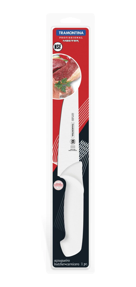 CUCHILLO TRAMONTINA PROFESIONAL CARNICERO 22,5CM USO SEGURO Y ADECUADO: Productos punzantes y punzantes, tenga cuidado al manipularlos y manténgalos fuera del alcance de los niños. Para una mayor durabilidad de los productos, se recomienda secar bien después del lavado, incluso después del lavado en lavadora. Para desechar productos y embalajes, siga las pautas de reciclaje vigentes. CERTIFICACIÓN NSF: Los productos Professional Master están certificados por la National Sanitation Foundation (NSF), una organización reconocida como la autoridad internacional en seguridad alimentaria y prácticas de higiene. Características: - Hoja de acero inoxidable DIN 1.4110 - Mango antimicrobial de Polipropileno - Cabo plástico sanitario ergonómico color blanco - Acero inoxidable NSF Stain Free High Carbon - Fabricado en Brasil Medidas y Peso: - Largo total: 35,5cm - Largo de hoja: 22,5cm - Peso: 0,19kg