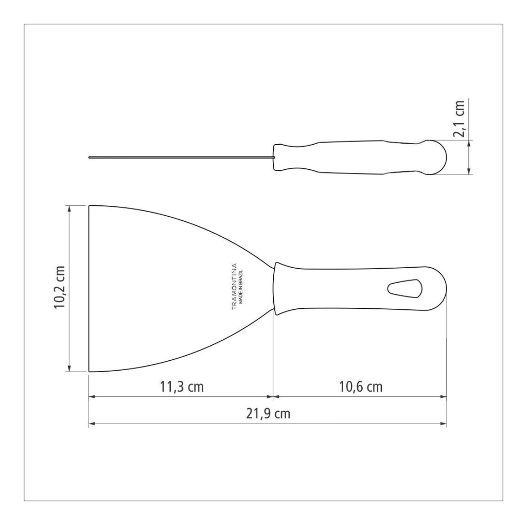 Espátula Cocina Acero Inoxidable Premium Tramontina 10cm La Línea Premium tienen diseño moderno y el mango de polipropileno posee textura, ofreciendo comodidad y seguridad durante su manejo. El corte de los alimentos se facilita con el filo de alta durabilidad debido al tratamiento térmico aplicado a las láminas de acero inoxidable. La línea tiene formatos especiales para los diferentes usos. Para más practicidad, utilice siempre el cuchillo adecuado. Se pueden lavar en lavavajillas. Características: - Largo total: 21,9 cm - Largo mango: 10,6 cm - Largo espátula: 11,3 cm - Ancho: 10,2 cm > Lámina de acero inoxidable. > Mango de polipropileno.