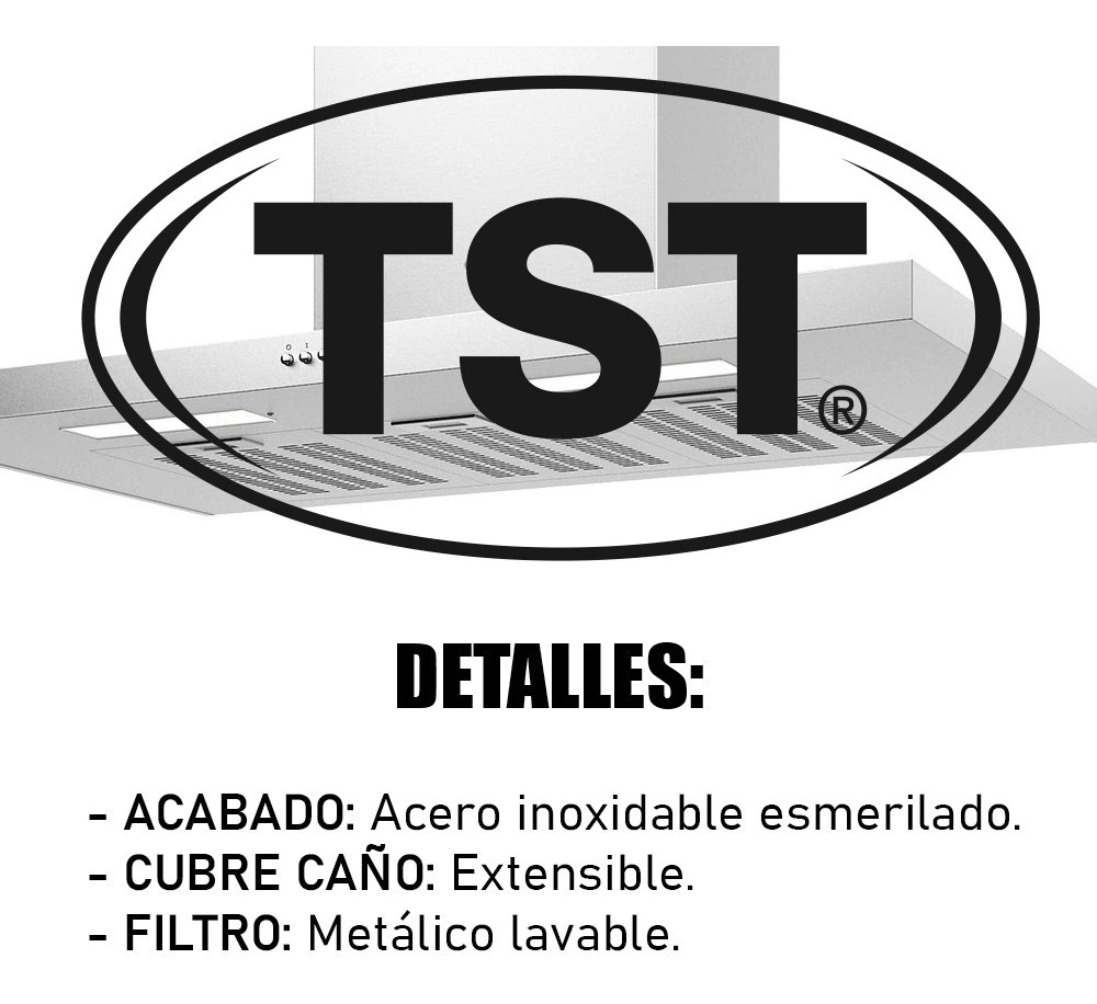 EXTRACTOR PURIFICADOR COCINA TST NIHUIL DE PARED 75CM Modelo: NIHUIL TST es una empresa con 60 años de trayectoria, especializada en la fabricación de productos para el hogar. Sus campanas de cocina tienen como propósito principal ser confiables y resistentes: están creadas para ofrecer soluciones precisas para que los clientes disfruten de un ambiente cuidado. Al ubicarse en la pared tiene una mejor proximidad a las hornallas y capta con mayor rapidez la densidad del ambiente. Detalles: - MOTOR: Interno 6" de bajo nivel sonoro. - COMANDO: Pulsante. - ILUMINACIÓN: 1-2 x 11w. - ACABADO: Acero inoxidable esmerilado. - CUBRE CAÑO: Extensible. - FILTRO: Metálico lavable. - EXTRACCIÓN: 800 m3/h con salida libre. - VELOCIDADES: 3.