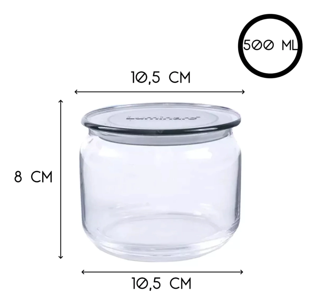 Frasco C/ Tapa Plana 500ml Vidrio Luminarc - Varios Colores