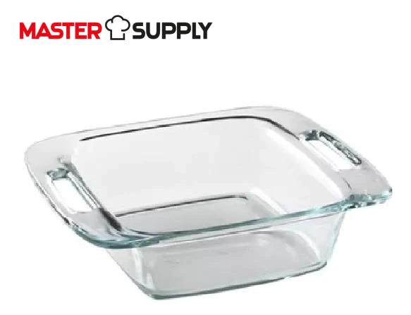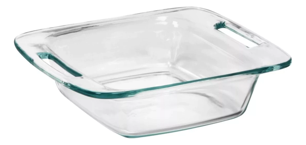 FUENTE CUADRADA EASY GRAB C/ASAS PYREX 1,9L Fuente Cuadrada Pyrex Easy Grab 1.9lts. o Asas grandes ahuecadas para un mejor agarre. o Producto de vidrio apto para horno convencional (precalentado), microondas, refrigerador, congelador y lavavajillas. o Material durable, no poroso, por lo que no se mancha, y no guarda olores ni sabores. o Hornea los alimentos de manera uniforme. o Es versátil, un solo refractario sirve para hornear y servir. o Producto amigable con el medio ambiente, es higiénico y seguro para la salud. o Este producto no es resistente al choque térmico ni resistente a la flama de la estufa ni fuente de calor directa. o Medidas externas: 28x23x7 cm (lado.lado.alto). o Medidas internas: 20x20x7 cm (lado.lado.alto). o Origen: USA. CARACTERISTICAS: >Capacidad: 1,9L >Largo: 20cm >Ancho: 20cm >Alto: 7cm