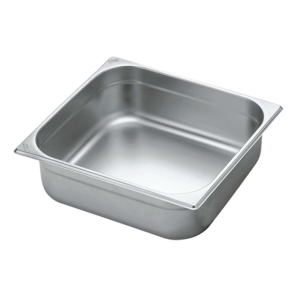 Fuente profunda GN 2/3 354x325x150mm Los GN Acero o Gastronorm son productos que no pueden faltar en su negocio, desarrollados especialmente para el almacenamiento de productos fríos y calientes, frutas, verduras, carnes, pescados o cualquier tipo de alimentos. Presentes en hotelería, catering y todo tipo de restaurantes. Con uso versátil en hornos convectores, convencionales y en general cualquier tipo de cocción. Características Principales: Color: Acero Inoxidable Alto: 150 mm Ancho: 325 mm Largo: 354 mm Espesor: 0,6 mm Marca: MASTER Materialidad: Acero Inoxidable 304 El acero inoxidable es unos de los materiales más higiénicos que existen. Su composición permite que la suciedad y agentes externos como el polvo y las bacterias no queden adheridos a la superficie. Es por ello que también es el material más utilizado en quirófanos y cocinas industriales. Sus mayores ventajas: - Máxima higiene y menor adherencia de la suciedad y agentes externos. - Fácil limpieza y gran durabilidad. - Resistente al calor y excelente conductor del mismo. - Material reciclable.