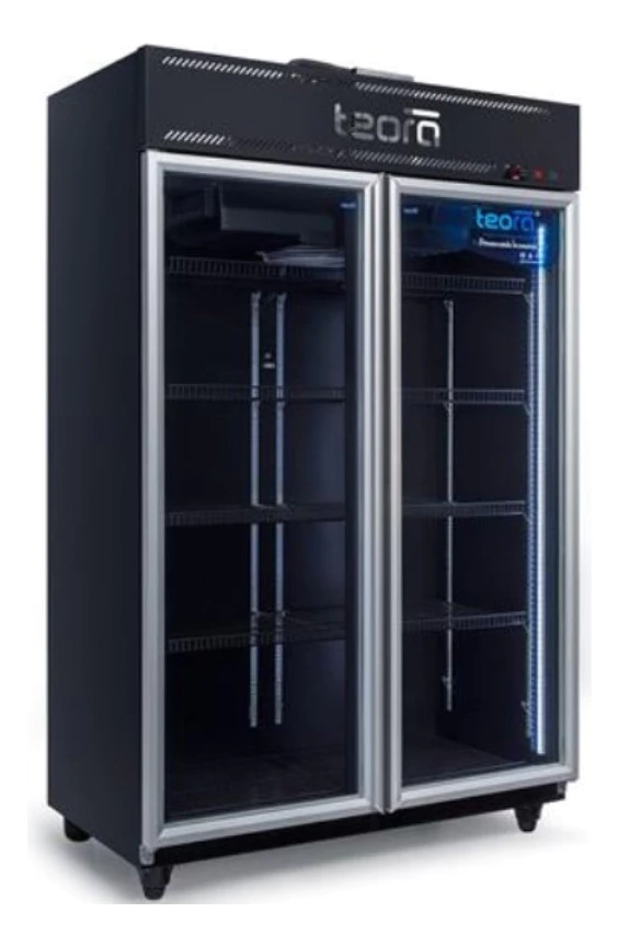 Heladera Exhibidora 2 Puertas Tev950 Black Teora 940 Lts Características 2 Vidrios LOW-E Cenefa iluminada Si Estantes de rejillas 8 Aislación Poliuretano de 38kg/m³ de densidad Condesación Forzada Evaporador Aletado Exterior del gabinete Chapa prepintada negra Interior del gabinete Chapa prepintada negra Luz interior Led Especificaciones del producto Capacidad (L) 940 Frente (mm) 1225 Profundidad (mm) 670 Alto (mm) 2020 Rango de temperatura 0°C a 7°C Gas refrigerante R-134a Voltaje / frecuencia 220v / 50Hz