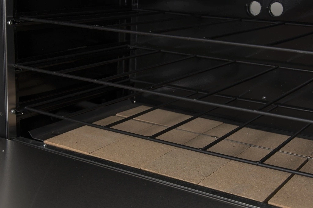 Horno 067 Sol real 6 moldes Características: - Puerta desmontable con manija de madera, bisagras irrompibles y pirómetro analógico. - Gabinete 100% acero inoxidable esmerilado. - Cámara de cocción enlozada con piso de tejuelas refractarias. - Incluye 3 rejillas extraíbles de 70 x 37 cm. - Mechero de 4 velas - 1 robinete. - Aislación térmica con lana mineral. - Base soporte reforzada desarmable. - Horno con válvula de seguridad. - Calorías: 4.400 MEDIDAS: ALTO C/PIE: 122cm PROFUNDIDAD: 56cm FRENTE: 84cm ALTO DEL PIE: 64cm