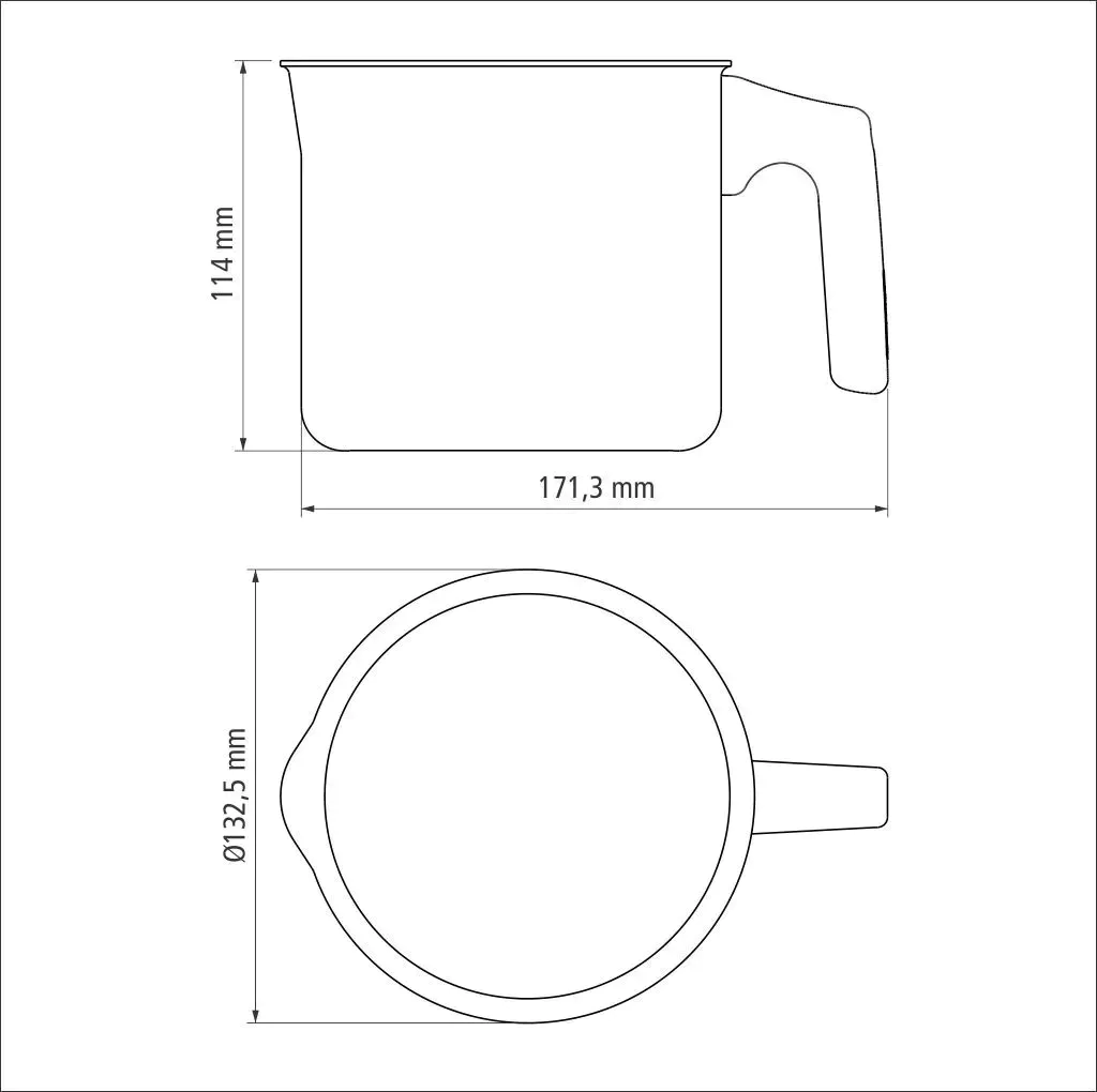 Jarro Hervidor Paris Tramontina Teflon 12cm 1,2L Características principales Marca Tramontina Línea Paris Modelo 28531/612 Otras características Material Teflón Capacidad en volumen 1,2 L Diámetro 13,2 cm Altura 11,4 cm Con revestimiento antiadherente Sí Con tapa No Es kit No Material del cuerpo Teflón Material del mango: Baquelita Diámetro 12 cm