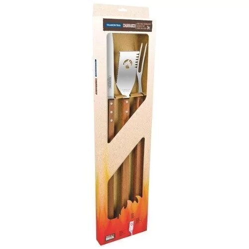 Juego para asado 3 pzas Láminas de acero inoxidable. Cabos de madera. Para que el asado salga perfecto, la línea Churrasco tiene una gama completa de utensilios hecha con el respeto que él merece. Y que, con el tiempo y la práctica, usted también lo conquista.