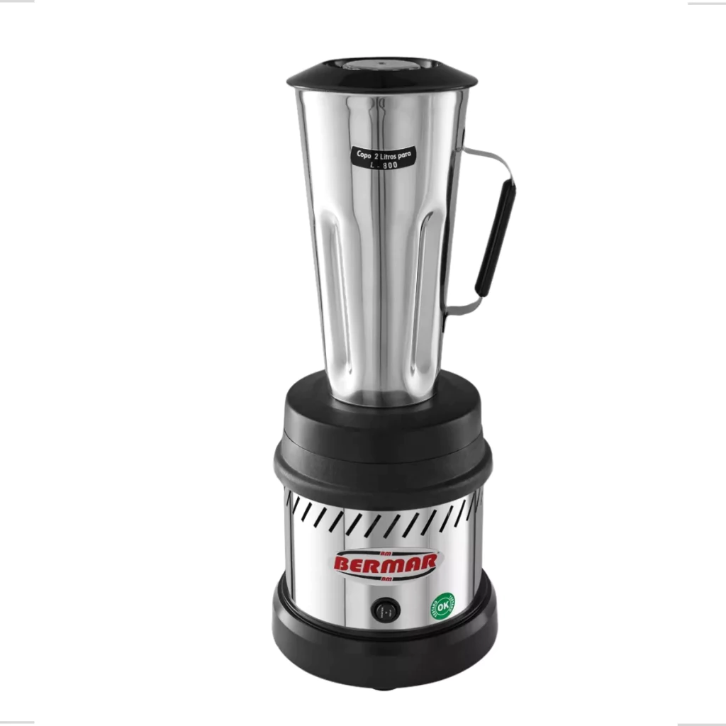Licuadora Alta Rotacion 2Lts Bermar Bm-176 Un producto imprescindible para tu establecimiento gastronómico. La batidora Bermar BM-176 te ayudará a conseguir resultados increíbles en cualquier cosa que prepares, ya sean refrescantes cócteles o batidos, salsas o sopas, o deliciosos postres que dejarán a tus clientes con ganas de volver a tu restaurante. ¡Tenlo siempre a tu alcance! CARACTERÍSTICAS GENERALES: - Estructura es de acero inoxidable 430 y su vaso es de acero inoxidable 304 - Con capacidad de 2 litros, con cuatro cuchillas también de acero inoxidable con material templado. - La diferencia es que es potente, con productividad profesional, operando con una velocidad de rotación 6 veces mayor que los modelos domésticos, lo que significa que su relación costo-beneficio es mucho mayor. - Tiene un rendimiento de 18000 RPM (Rotación Por Minuto), además, los productos BERMAR están certificados internacionalmente y cumplen con la NR-12 del Ministerio del Trabajo, y la Ordenanza 371/2009, del Inmetro. CARACTERÍSTICAS ESPECIFICAS: Marca: Bermar Voltaje: 220V Capacidad: 2 litros Frecuencia: 50 HZ Potencia: 800W Rotación: 18.000 RPM Consumo: 0,45 KW/H Cubicaje: 0.025 M3 DIMENSIONES: Medidas del producto Al x An x Pr: 48x22x39 cm Dimensiones del embalaje Al x An x Pr: 31x22x39 cm Peso neto: 3,5 kg Peso bruto: 4 kg Utilidad: oSe utiliza para licuar jugos, frutas, etc.
