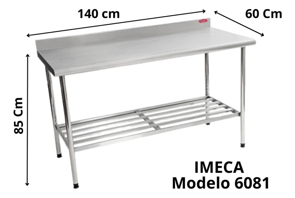 Mesa Gastronomica Acero Inoxidable 140x60Cm Ascada Características del Producto Marca Imeca Modelo 6081 Estructura 100% de acero inoxidable 430 Incluye Zócalo Posterior Mesa Multiuso Profesional de 6 mm de espesor Esquinas redondeadas Incluye estante inferior Práctico sistema 100% Desmontable Fabricado por Imeca. Peso Máximo soportable 120kg - Dimensiones Largo 140 cm Profundidad 60 cm Altura 85 cm