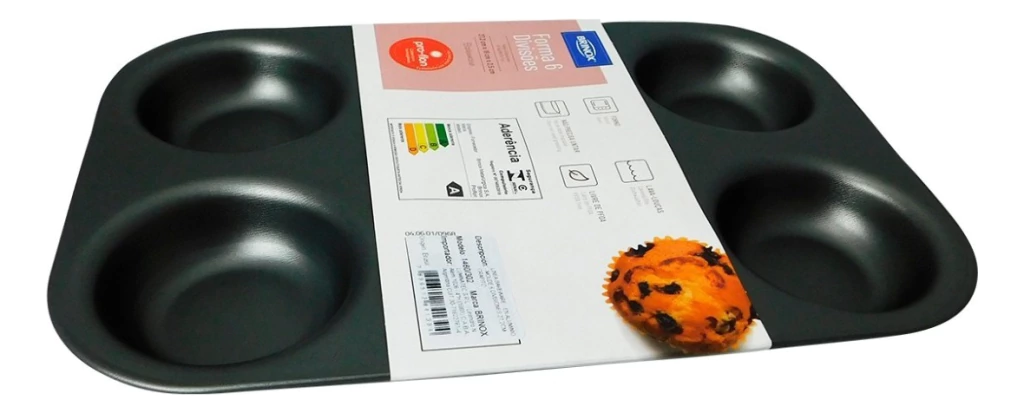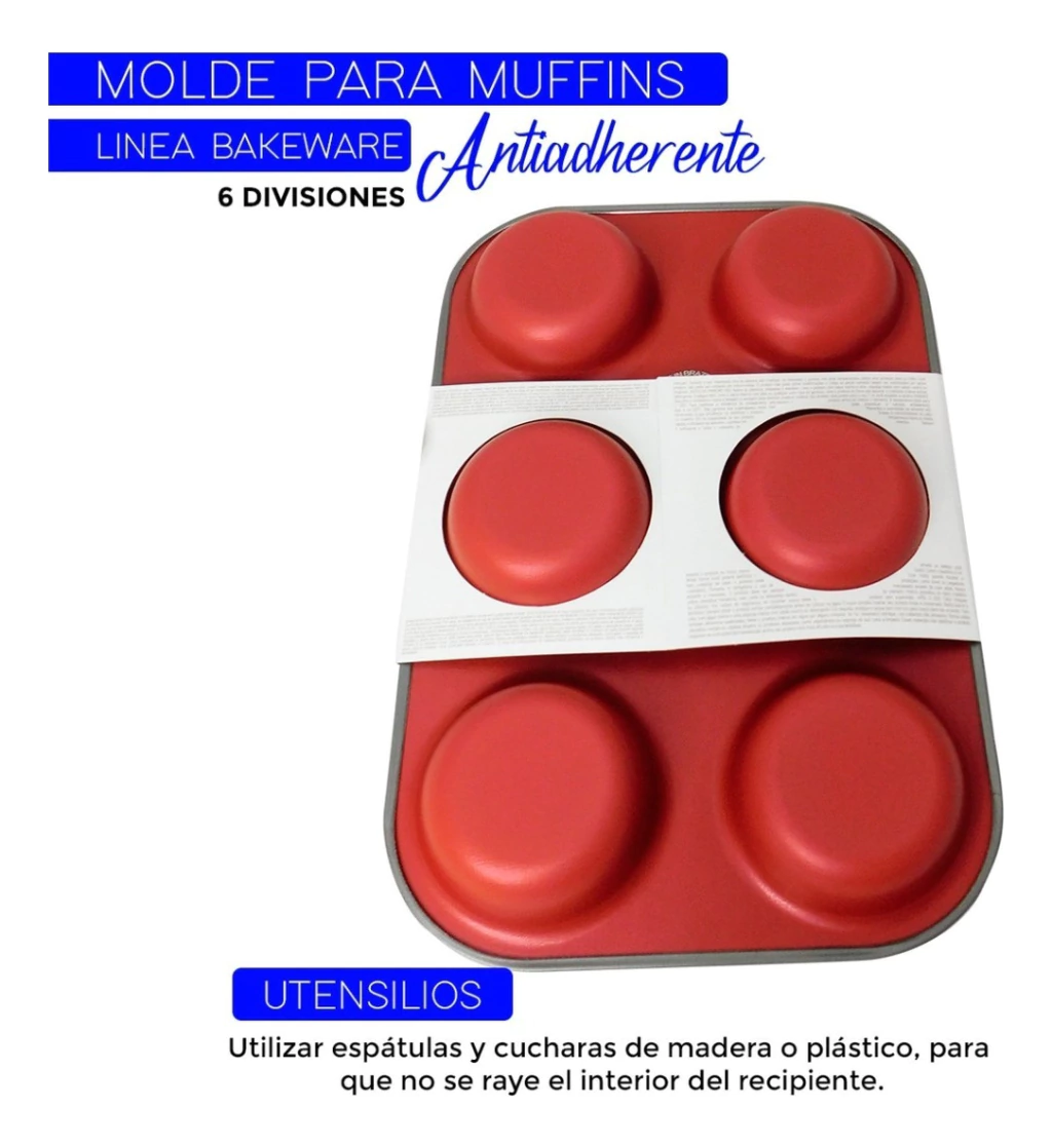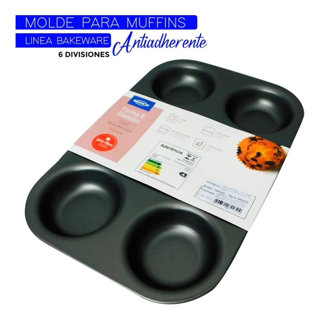 Molde 6 Divisiones Bakeware Antiadherente Brinox 27cm Cereza Este molde es para quien busca practicidad y seguridad al cocinar. Está fabricado en aluminio y contiene Pro-flon antiadherente de clase "A", que permite que uses menos manteca y que tus postres no se adhieran al molde. Está diseñado en aluminio de 0,8 mm de espesor y son libres de PFOA. CARACTERÍSTICAS: MARCA: BRINOX LINEA: BAKEWARE MODELO: 1461/302 o Medidas: - Alto: 2,5 cm - Largo: 27,2 cm - Ancho: 18 cm COLOR: CEREZA MATERIAL: ALUMINIO CANTIDAD DE RANURAS: 6 USO RECOMENDADO: Muffins, Cupcakes, Pan