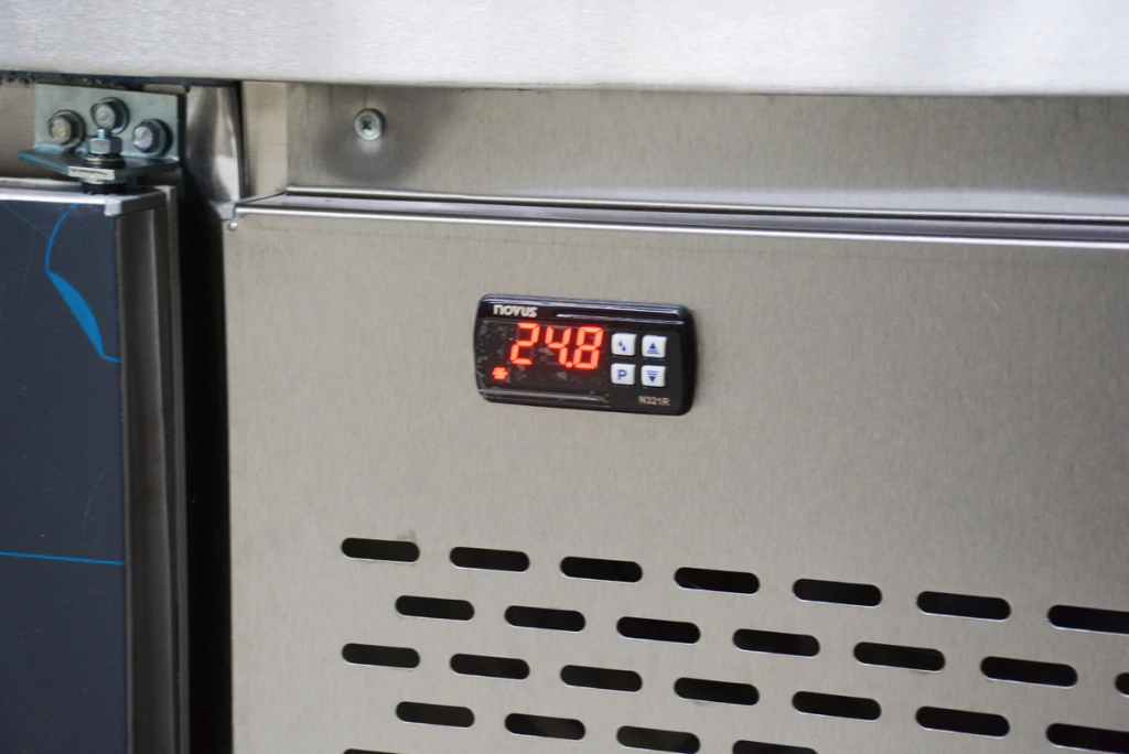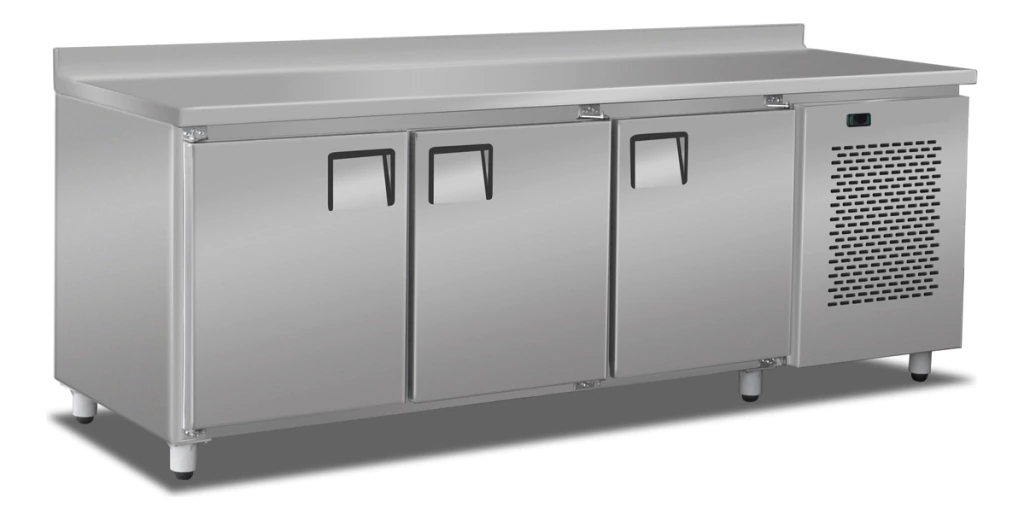 Mostrador Refrigerado Ciego Equipado Frider 1.93 Mts Características Generales: Modelo MO1930AACCE Puertas 3 Largo (cm) 193 Profundidad (cm) 75,5 Alto (cm) 85 Potencia (HP) 1/3 Características Especificas: o Gabinete exterior en chapa de acero inoxidable esmerilado. o Piso exterior en chapa galvanizada. o Interior en chapa de acero inoxidable brillante. o Aislación en poliuretano expandido de 40 Kg/m3 libre de CFC. o Evaporador de techo por aire forzado. o Control de temperatura digital. o Llave para puesta en funcionamiento. o Rejillas blancas plastificadas. o Patas de plástico reforzado regulables. PUERTAS: o Tipo placa. Exterior en acero inoxidable esmerilado interior en chapa galvanizada. o Manija plástica incorporada embutida. o Burlete magnético o Sistema de cierre con resorte de tensión.