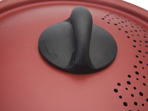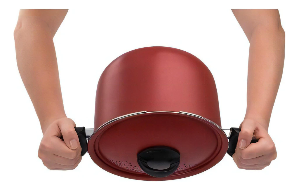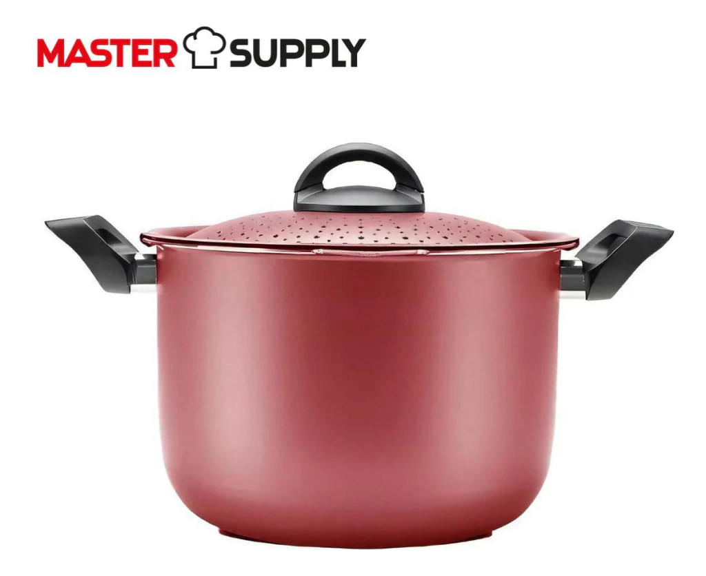 Olla Para Spaghetti Tapa de Seguridad 5,7L 22cm Color Cereza La Spaguetera Brinox de aluminio es una gran opción para preparar esa deliciosa pasta. Tiene tapa con cierre de seguridad, solo cierra y escurre la masa directamente sobre la tapa, con total practicidad y seguridad. La cazuela está fabricada en aluminio con un interior antiadherente, lo que ayuda a preparar alimentos con menos aceite, ideal para una dieta más saludable para ti y tu familia. Características o COLOR: CEREZA o MARCA: Brinox o TECNOLOGÍA: PRO-FLON (Antiadherente) o LIBRE DE PFOA: SI o PRODUCTO: Olla o MATERIAL: Aluminio o MANIJAS: Baquelita