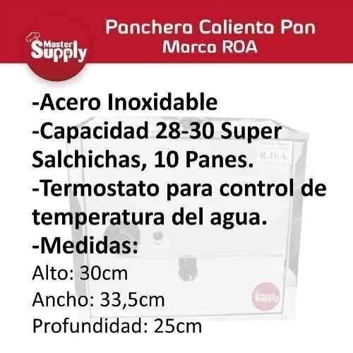 Panchera Electrica Calienta Pan 28 Salchichas Panchos | ROA - Capacidad 28-30 Super Salchichas, 10 Panes. - Termostato para control de temperatura del agua. - Acero inoxidable - Incluye Pinza y Divisor -Medidas: Alto: 30cm Ancho: 33,5cm Profundidad: 25cm