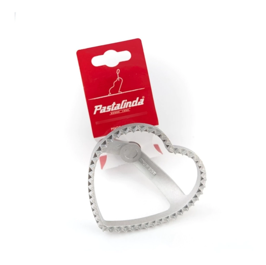 PASTALINDA RUEDA SELLO CORTA RAVIOL CORAZÓN 85x85 MM DE ALUMINIO Modelo: Corazón Marca: Pastalinda Industria Argentina de origen italiano fundada en 1950 creadora de la icónica máquina elaboradora de pastas "PASTALINDA®". Rueda Sello Corta Raviol Corazón Pastalinda