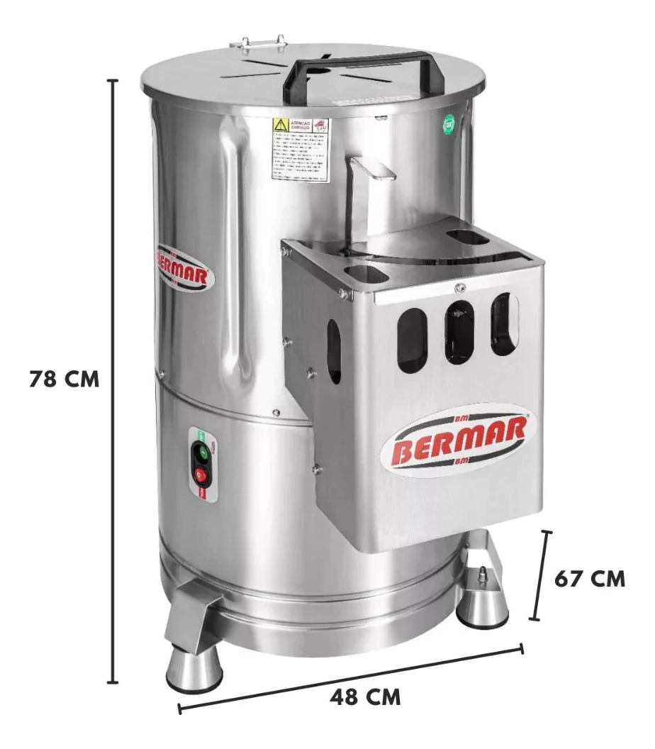 Peladora De Papas 10Kg Bermar BM-159 La Peladora es un equipo indicado para pelar hortalizas, tubérculos y raíces, de alto rendimiento y agilidad. Proporciona optimización del tiempo y aumento de la productividad debido a su capacidad para pelar grandes cantidades en una sola operación. El Pelador está desarrollado de acuerdo con las especificaciones de Inmetro. Es un producto apto para establecimientos como restaurantes, bares y cafeterías, comedores y hospitales, facilitando el trabajo en estos lugares. El equipo tiene una capacidad de 10kg y un potencial de producción de hasta 200 kg/h, con un voltaje de 127V o 220V, además de contar con un potente motor de alta productividad.