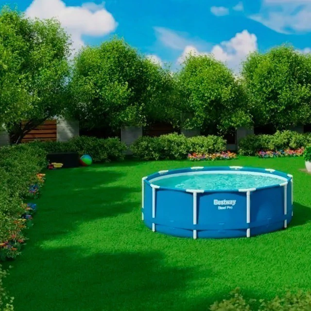 PILETA REDONDA ESTRUCTURAL 4678 LITROS MARCA: BESTWAY MODELO: 56677 CARCTERISTICAS Y CONTENIDO: - Medidas: 76 cm alto x 305 cm diametro - Capacidad de llenado: 4.678 litros - Pico de desagote y tapones - Materiales de la pileta: PVC, Poliéster. Armazon: Acero - Materiales resistente al clima extremo - Sistema Estructural STEEL PRO FRAME - El producto viene en caja con manual de instrucciones para ser armado - Medida embalaje: 27 x 27 x 90 cm - Producto original importado - NO INCLUYE CUBREPILETA NI BOMBA - INCLUYE: - Pileta - Parche de reparación de alta resistencia Las paredes de la piscina están construidas con DuraPlus (TM), un material reforzado con un núcleo de malla de poliéster y dos capas de PVC de alto calibre para mayor resistencia y durabilidad Piscina equipada con FrameLink System (TM) patentado: los conectores en T evitan la corrosión metal sobre metal Fácil configuración de 20 minutos Fácil de desmontar cuando se prepara para el almacenamiento fuera de temporada Paredes laterales de PVC y poliéster de alta resistencia de 3 capas La banda de 3 capas proporciona un soporte de pared adicional La válvula de drenaje de control de flujo incorporada se conecta a la manguera de jardín (con el adaptador incluido) para drenar fácilmente el agua La forma redonda significa una fácil instalación, mayor estabilidad, menos espacio desperdiciado Parche de reparación adhesivo subacuático La piscina está equipada con accesorios para compatibilidad con las bombas de filtrado Flowclear (TM)