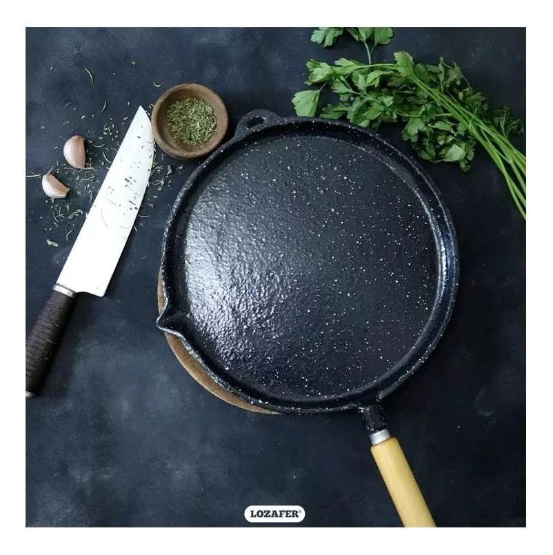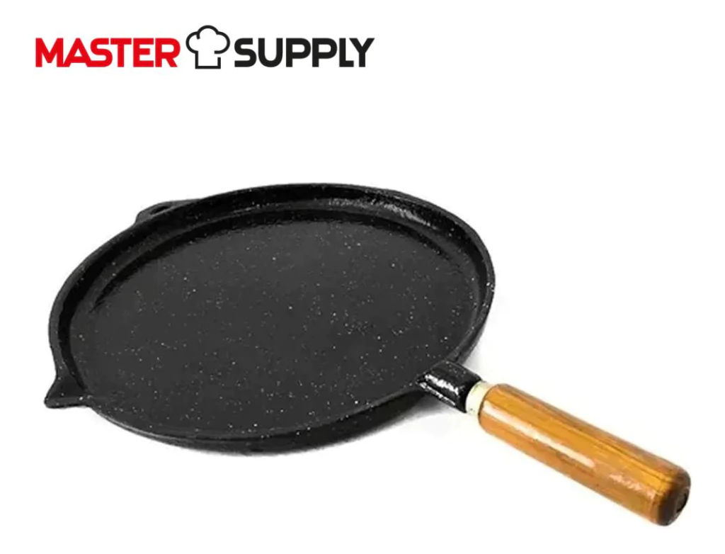 Plancha Bifera Lisa Enlozada Redonda Nº4 Mango Madera 31cm CARACTERÍSTICAS: -Mango Madera -Pico Vertedor -Colgable Características principales Marca Lozafer Línea Enlozada Modelo 0105 Tipo de producto Plancha Otras características Material del cuerpo Hierro Forma Redonda Diámetro 29 cm Largo x Altura 40 cm x 2 cm Con superficie antiadherente No Con superficie acanalada No Incluye tapa No Incluye espátula No