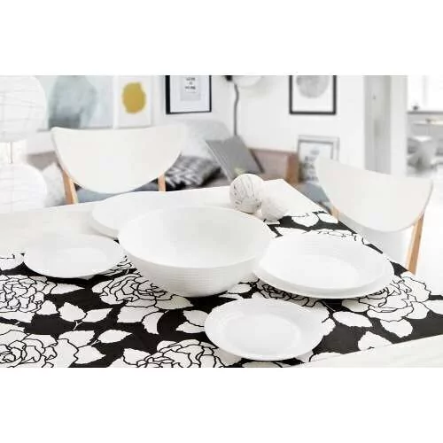 Plato Playo 27cm X6 Luminarc Harena Vidrio Templado Incluye: 6 Platos Playos de 27cm El modelo Harena de Luminarc se caracteriza por su forma redonda de círculos concéntricos en color blanco brillante que permanece inalterable en el tiempo después de su lavado en el lavavajillas y totalmente seguros en su uso en el microondas. La vajilla Harena esta fabricada en vidrio opal lo que le otorga una alta resistencia a golpes, rayas y lavados así como una ultra-higiene gracias a que el vidrio opal tiene un 0% de porosidad, lo que la convierte en una vajilla de diario de excelentes características. Todos los platos de la vajilla redonda de opal Harena son perfectamente apilables lo que le permitirá ahorrar espacio y el día que decida cambiar de vajilla podrá realizarlo fácilmente ya que es 100% reciclable. Disponemos de: platos playos principales, de entrada, hondos, postre, pan, café, té/desayuno. También disponemos jarritos de café, pocillos, tazas de té, tazas de desayuno, tazas o jarro mug. Lecheras, cafeteras y otra línea de menaje para su mesa.