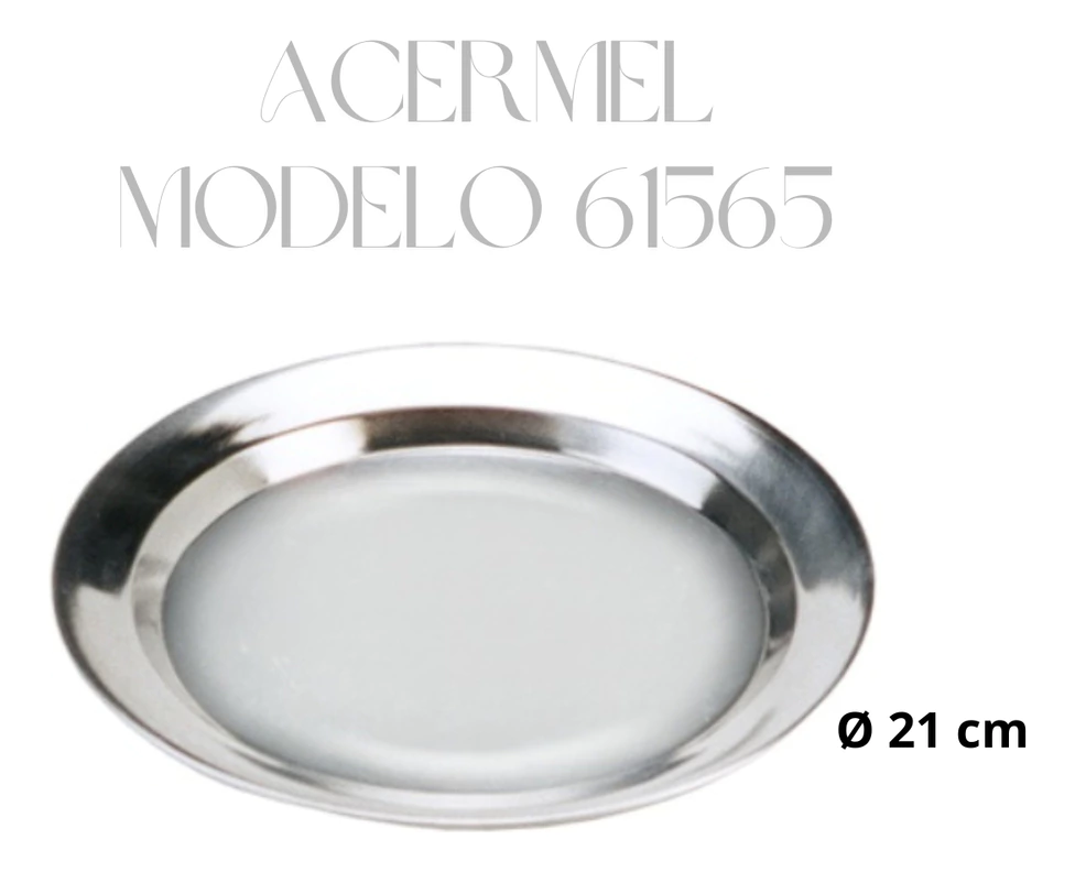 PLATO PLAYO MESA ACERO INOXIDABLE ACERMEL 21CM Su composición permite que la suciedad y agentes externos como el polvo y las bacterias no queden adheridos a la superficie. Es por ello que también es el material más utilizado en quirófanos y cocinas industriales. Características: Características principales Marca Acermel Línea Platos Mesa Modelo: 61565 Tipo de plato de vajilla: Playo Color Plateado Formato de venta Unidad Otras características Material Acero inoxidable Forma Redondo Diámetro 21 cm Usos seguros: mesa, Lavavajillas