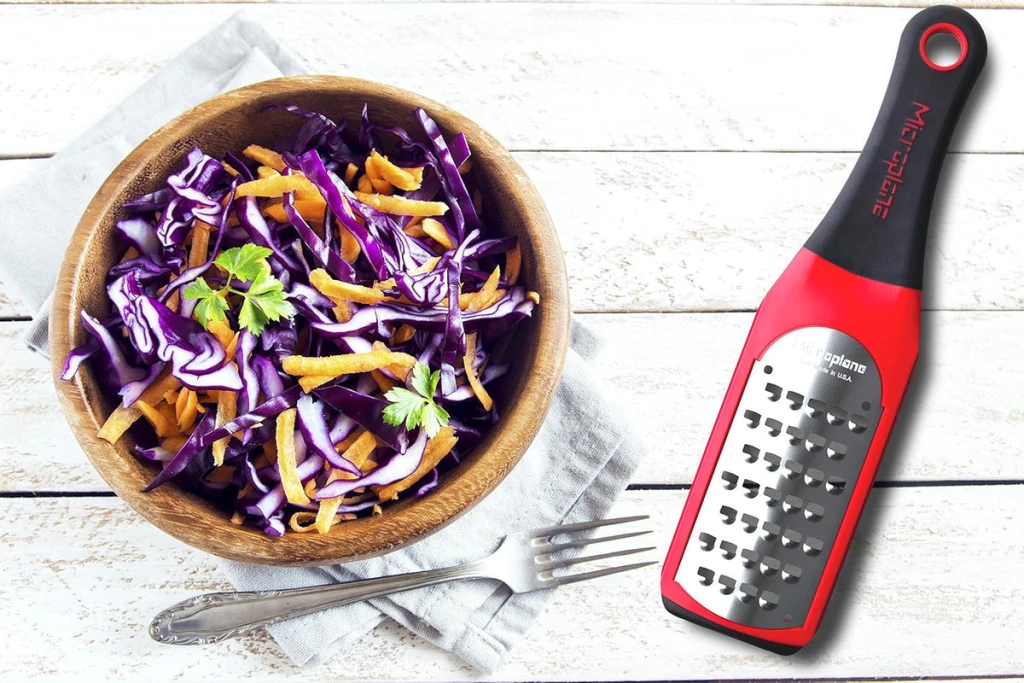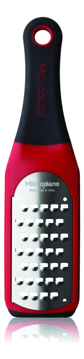 Rallador Coarse Artisan Microplane Rojo La serie Microplane Artisan ofrece una mayor superficie de rallado y un atractivo diseño. La hoja fina de acero inoxidable es ideal para rallar todo tipo de cáscaras de cítricos sin extraer el sabor amargo de la fruta, también es bueno para especias duras, como la nuez moscada, la canela y los clavos de olor. Características: -Rallado Grueso -Con cubierta protectora reutilizable incluida - Este rallador cuenta con una cuchilla fina en acero inoxidable de 3 mm. - En cuanto al mango, el mismo es de plástico engomado. - También incluye un protector de plástico para la hoja. - Material de la hoja: Acero Inoxidable -Pies de goma para mayor estabilidad -Mango ergonómico de suave agarre -Hoja de acero inoxidable de grado quirúrgico -Marco y mango de plástico - Medidas: 26 x 7cm