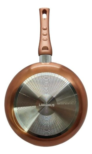 LARHAUS VOLT | SARTEN COBRE 20 cm Primera calidad. CARACTERÍSTICAS o Marca: Larhaus o Modelo: Volt o Medida: 36 cm de largo TOTAL x 20 cm de diámetro x 4,5 cm de alto o Material: Cuerpo de 2.0 mm de espesor resistente a la corrosión, antiadherente cerámica de alta performance! Nueva pintura metálica y mango Soft Touch! o Color: Cobre o Apto para: Eléctrico, halógeno, vitrocerámica y cocina a gas! NO APTO PARA LAVAVAJILLAS