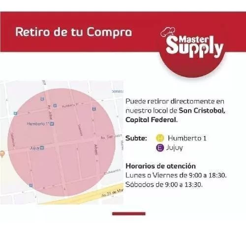 Master Supply - Av san juan 2708 , Capital Federal. Atencion de Lunes a Viernes de 9 a 18.30 hrs y Sabados 9 a 13.30 hrs.