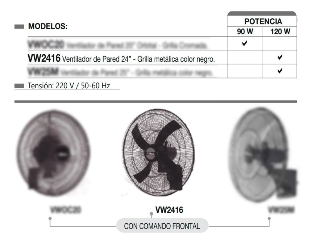 VENTILADOR DE PARED 24" 120W P/METALICA